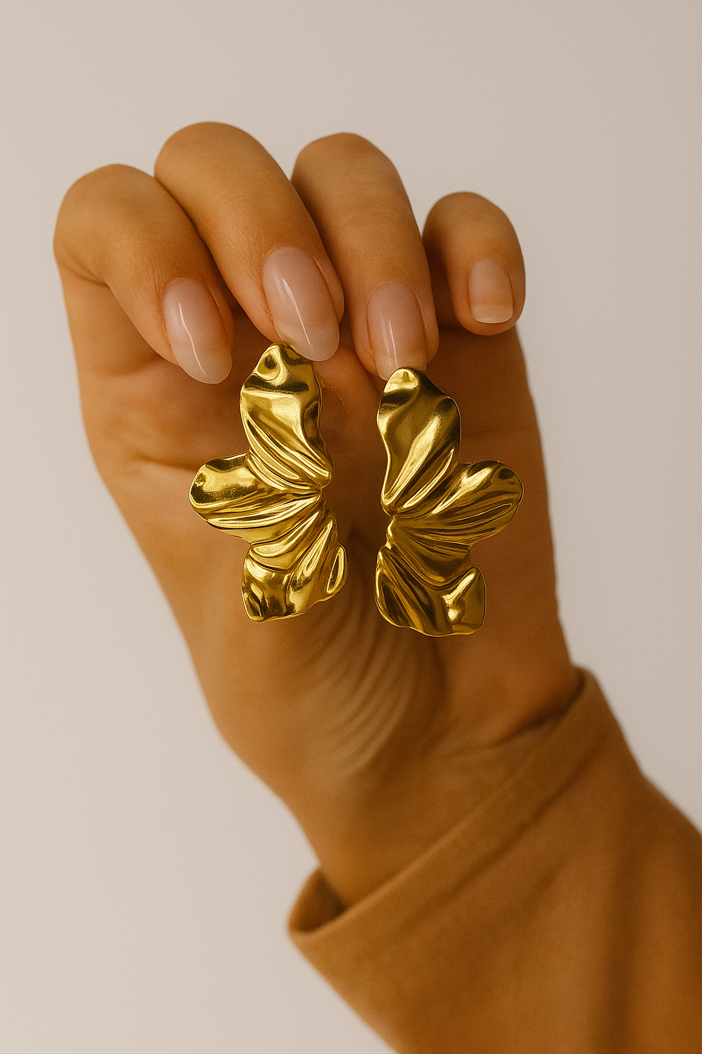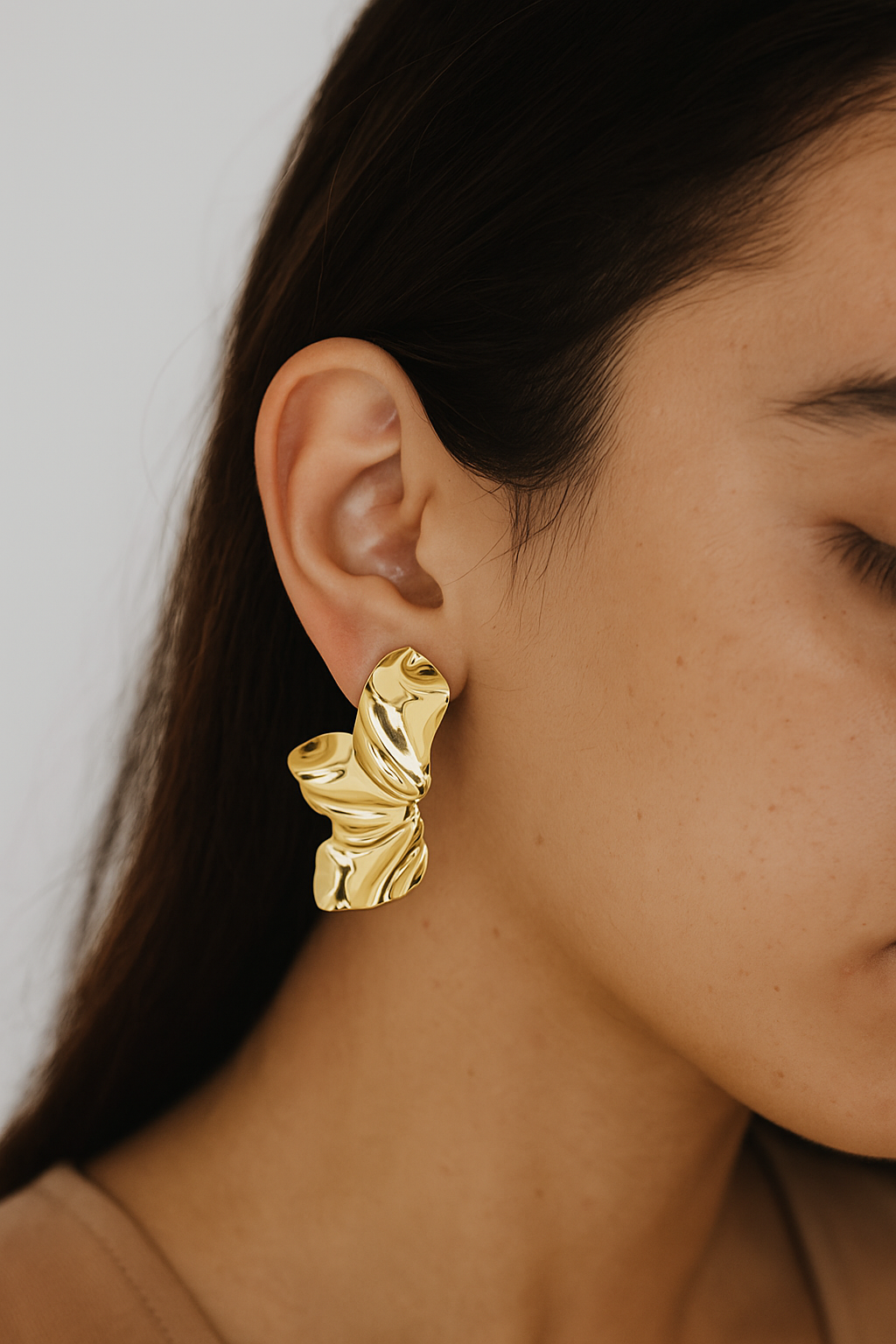 A crinkled finish, designed to add an artsy yet glamorous flair. Lightweight yet statement-worthy, they’re perfect for elevating minimal or monotone outfits.