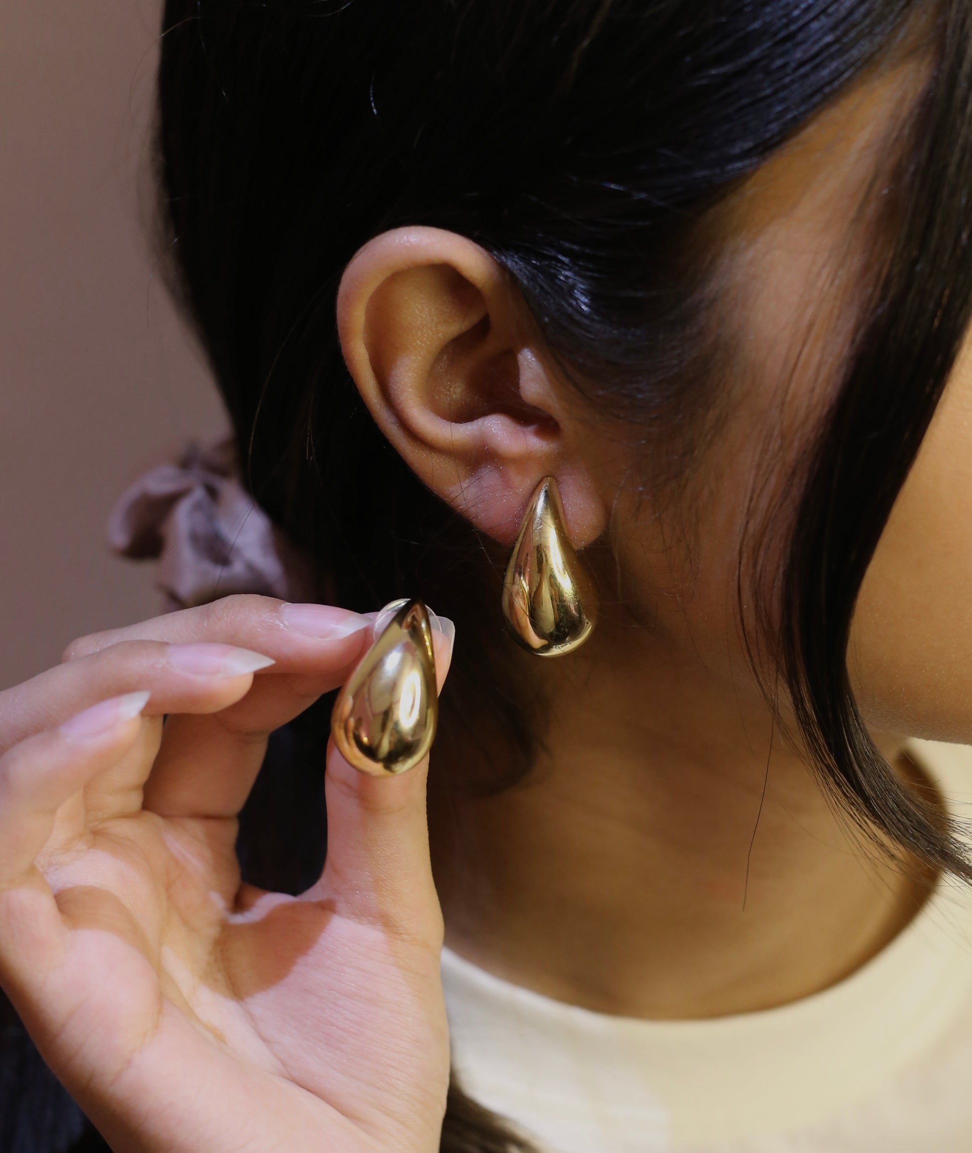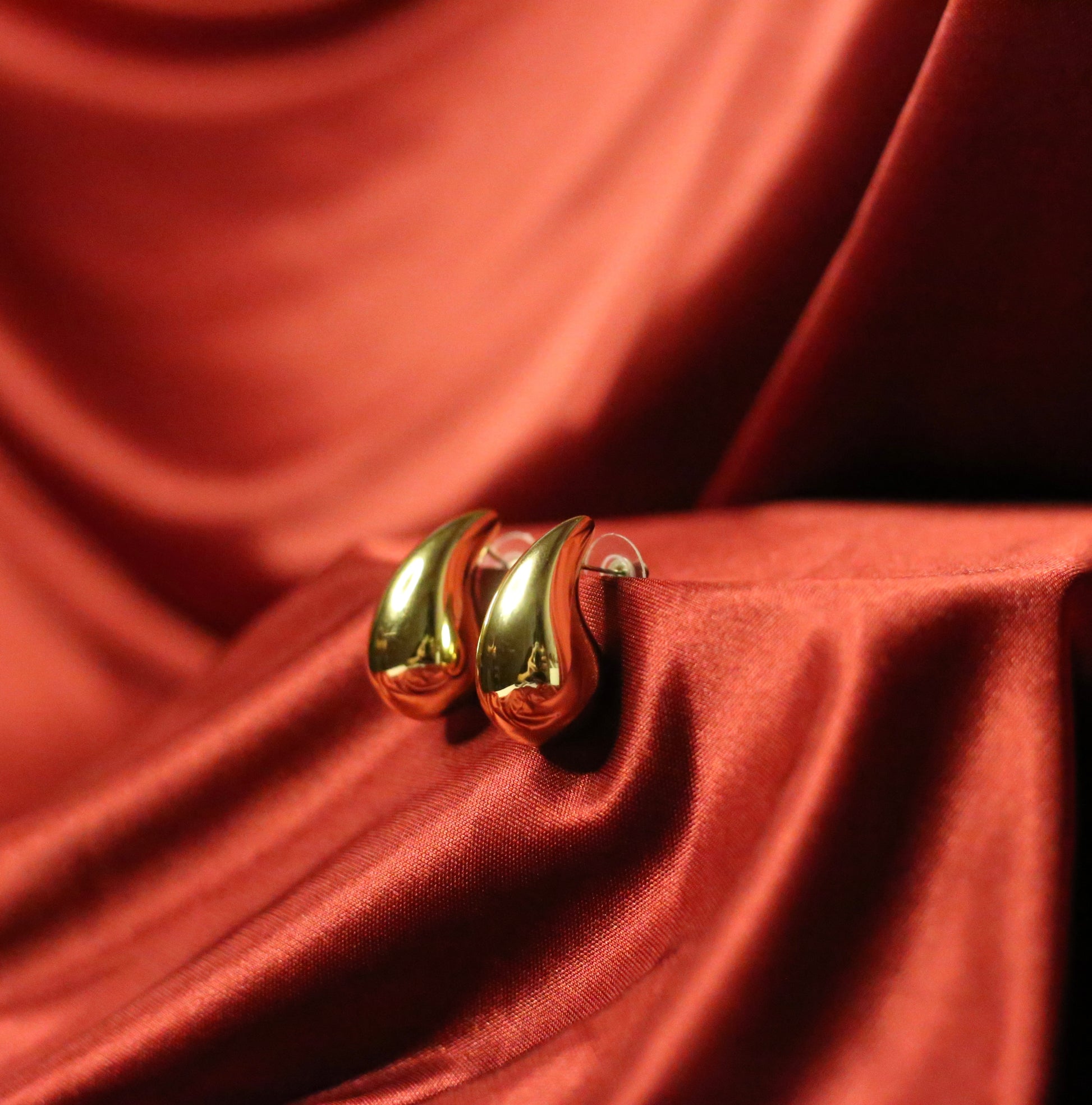 The Molten Tear Studs are a study in fluid form — shaped like soft teardrops and polished to a mirror-shine finish. With their bold yet graceful curve, they sit snug on the ear and radiate quiet confidence. Coated with an anti-tarnish layer, they promise lasting brilliance with everyday comfort.
